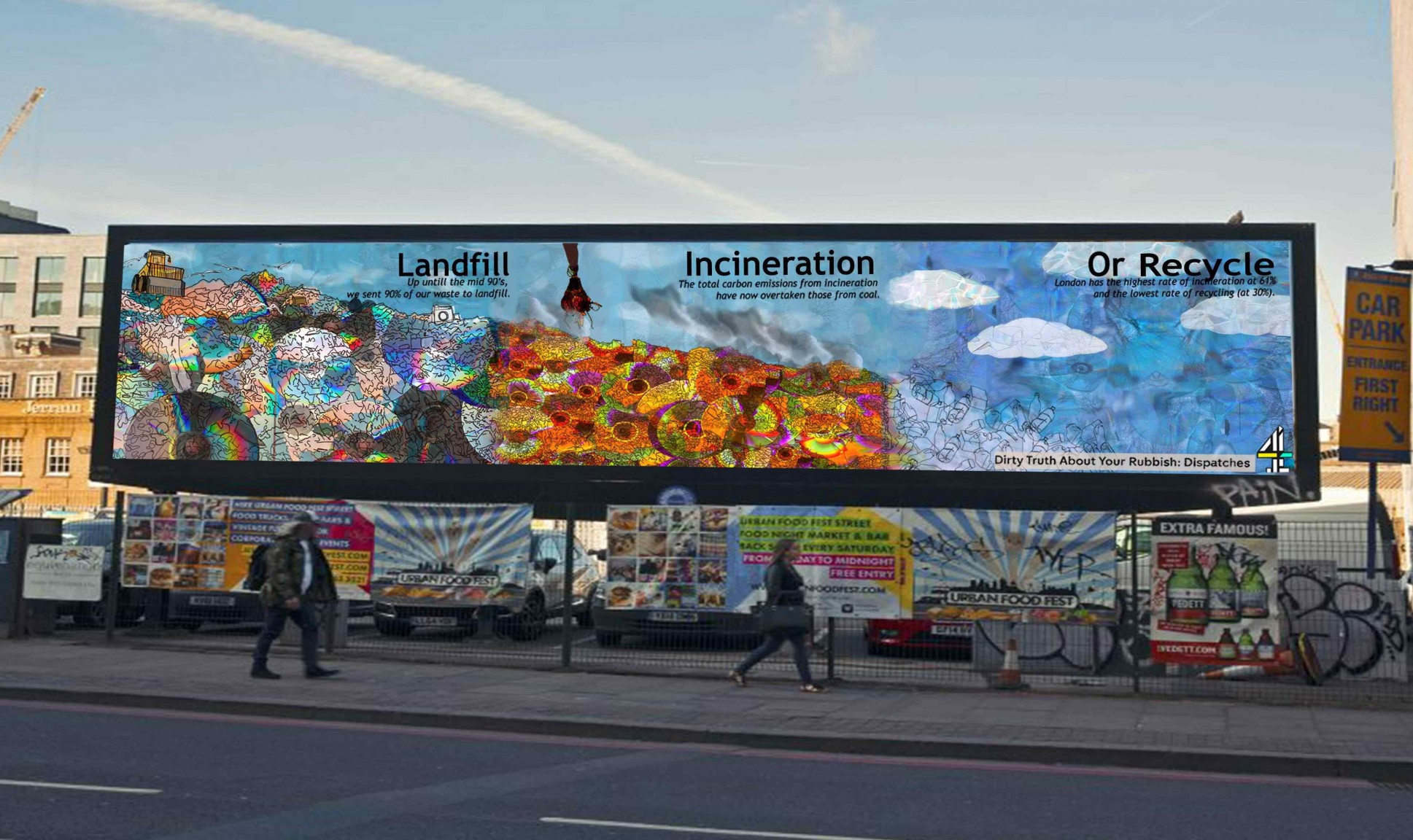 What a Waste is a billboard campaign by Lucy Jessica Coney for the Channel 4’s documentary ‘Dirty Truth About Your Rubbish: Dispatches’, which details what happens to waste and how this process changes through time.
