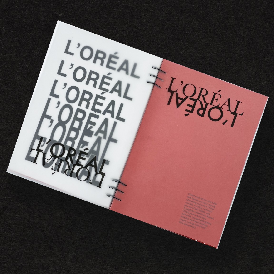 Inspiration came from 1970s publications due to the link between this time and the slasher genre. Typeface choices were made based on promotional film ephemera from this era – in particular De Palma’s 1976 adaptation of ‘Carrie’, as well as various other Stephen King novels. The physical form of the book is the size of a VHS video cassette (also released in 1976) referencing the way these films were distributed. The publication additionally incorporates a ribbon bookmark – a nod to religious texts – a common theme throughout the copy and visual reference. Colour choices allude to the menstrual cycle; as the reader progresses through the book, the page colour reflects varying phases of the menstrual cycle.