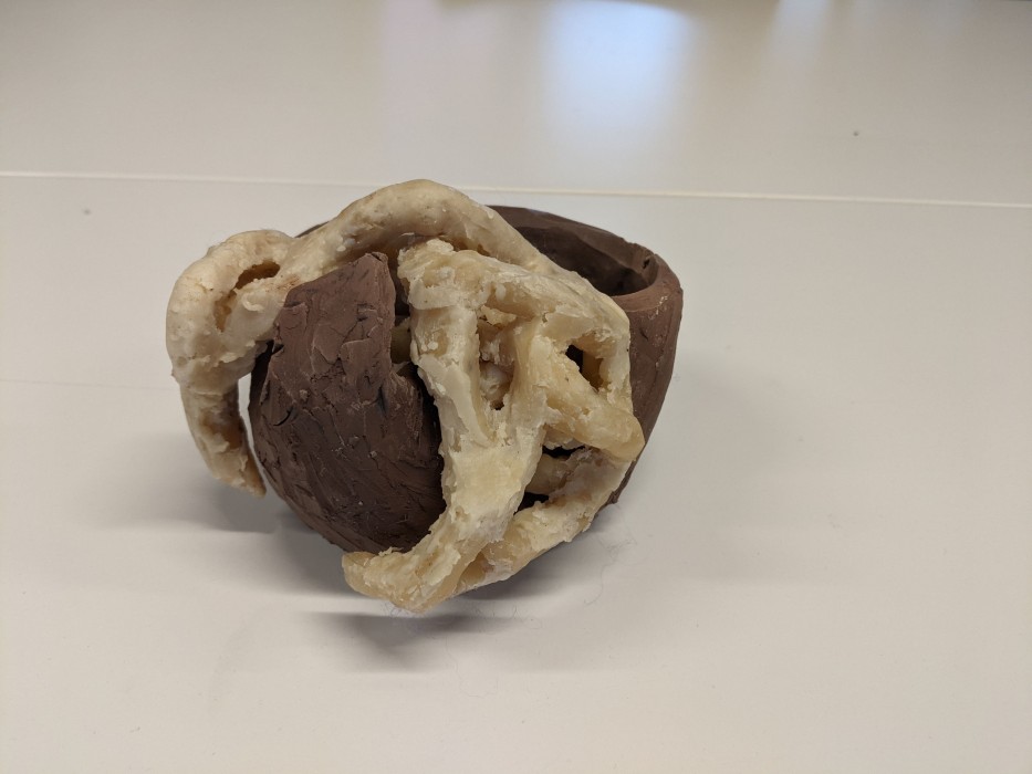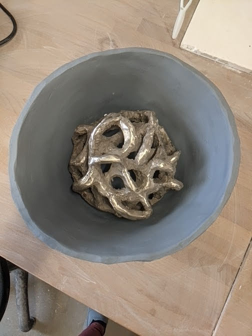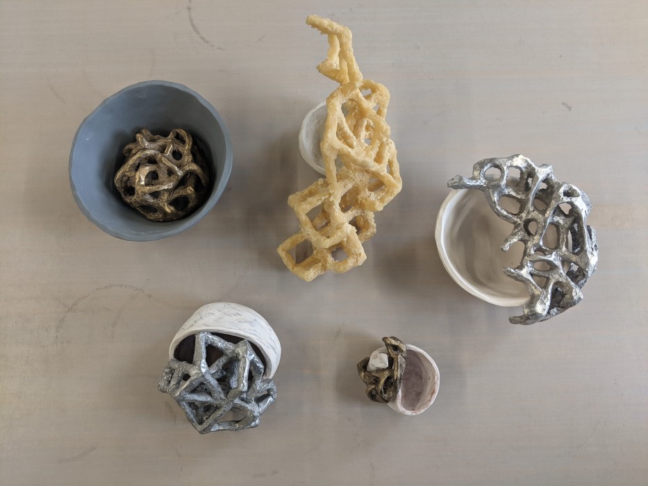 This project is inspired from Justyna Maksymczak’s previous work which explores different types of material and their interaction with each other. The focus of the current project is on the design and making of a several ceramic bowls with the addition of a decorative and functional element made from different metals. Maksymczak wants to investigate how the materials interact in combination with each other and the feelings they evoke. She is interested in functional art: artwork that has a practical use.