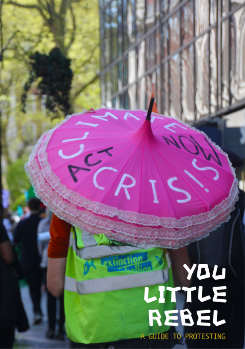 “You Little Rebel” is a typography based zine, created by Molly Moore, that captures the beauty and freedom of protest through photography, giving a real sense of being surrounded by the sea of flags and vibrance of characters. The zine’s photographs were captured at a recent Extinction Rebellion protest in Hyde Park, fighting against the use of fossil fuels.